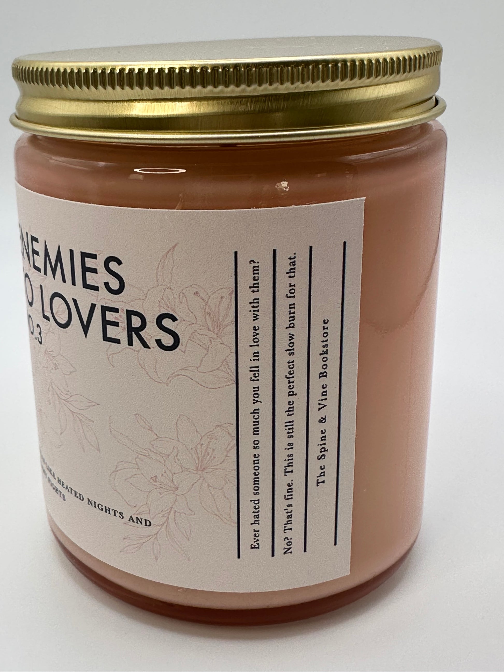 Spine & Vine's exclusive ENEMIES TO LOVERS candle is designed by the owner, Melissa, and hand poured by a Temecula local business, Candles by Kimberly.