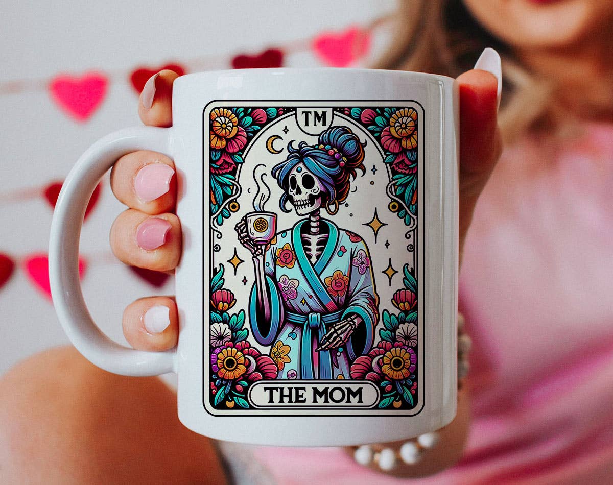 The Mom Tarot Card - Coffee Mug. Printed in USA. Top Rack Dishwasher Safe. Double Sided Print.